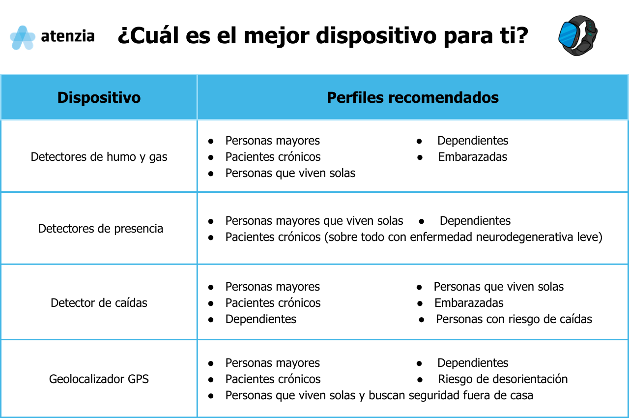 A continuación, te detallamos el amplio abanico de dispositivos de teleasistencia que existen a día de hoy, entre los que se encuentran los detectores de humo o de presencia, y otros que seguro te sorprenderán.